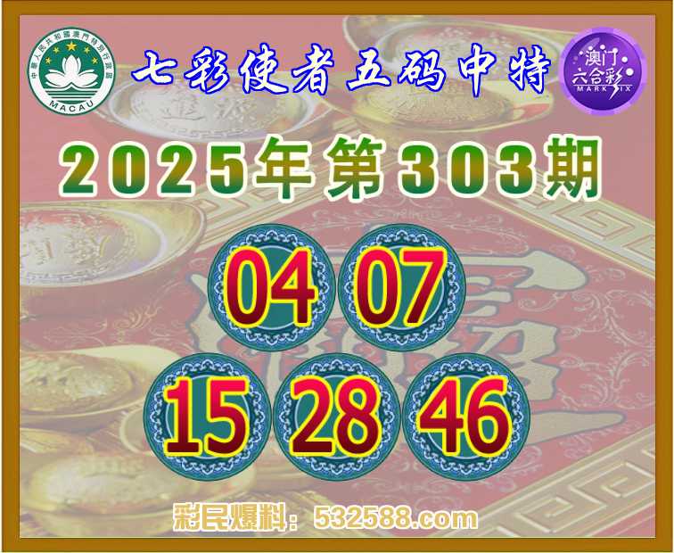 303期:〖七彩使者〗 🧩五码中特🧩【04.07.15.28.46】开:15准