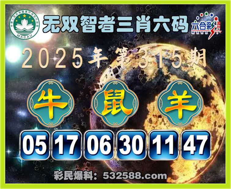 315期: 🕯《无双智者》 🕯三肖六码🕯【牛鼠羊】开:虎04错
