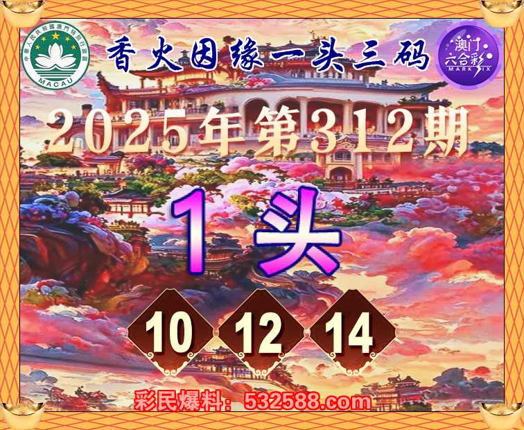 312期: 香火因缘 🥼一头三码🥼【1头主:10.12.14】开:龙14准