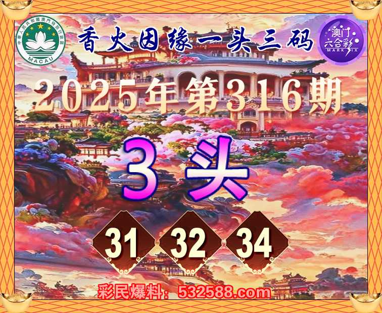 316期: 香火因缘 🥼一头三码🥼【3头主:31.32.34】开:马24错
