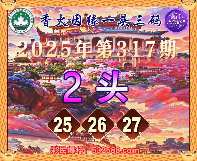 317期: 香火因缘 🥼一头三码🥼【2头主:25.26.27】开:00准