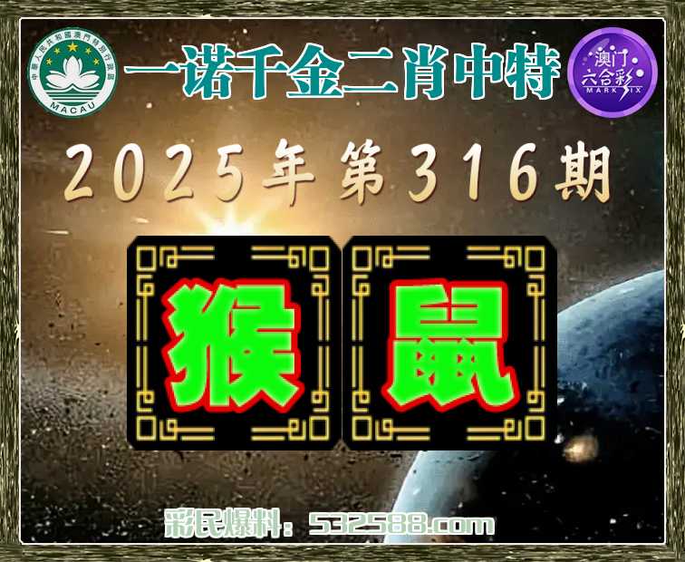316期: 🥖『一诺千金』 🥖二肖中特🥖【猴.鼠】开:马24错