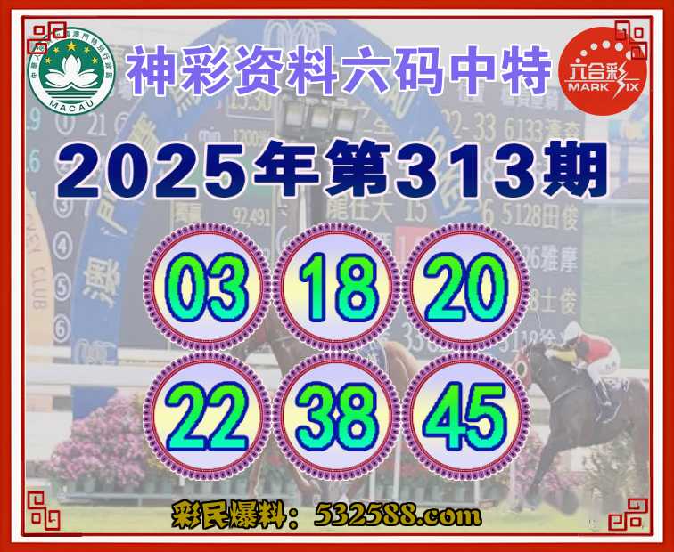 313期:《神彩资料》 ☺️六码中特☺️【03.18.20.22.38.45】开:38准