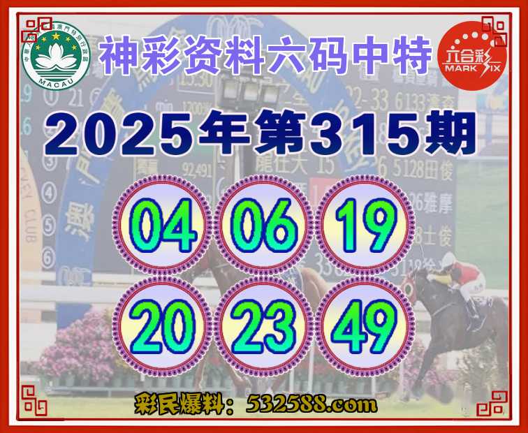 315期:《神彩资料》 ☺️六码中特☺️【04.06.19.20.23.49】开:04准