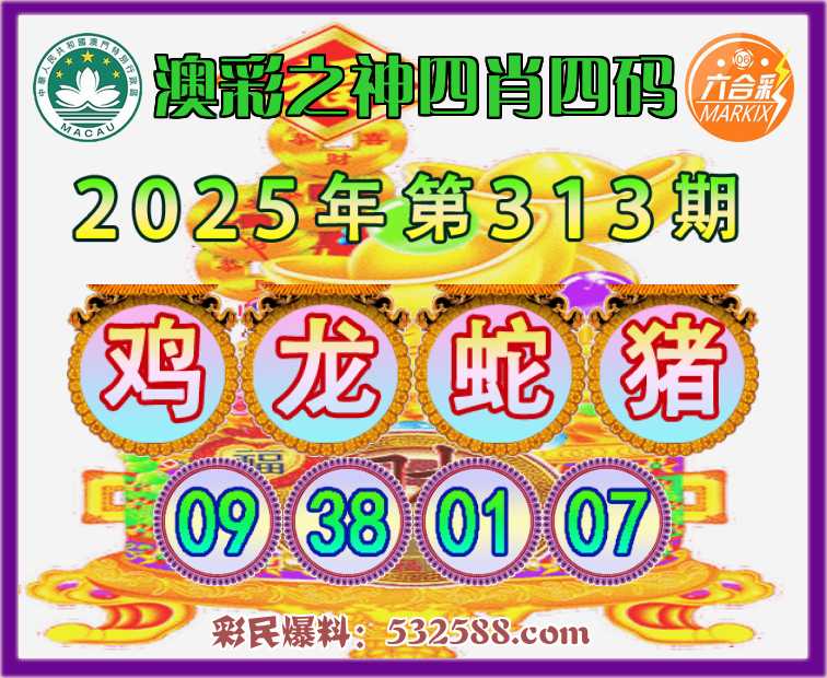 313期:〖澳彩之神〗 ✨四肖四码✨【鸡龙蛇猪】【09.38.01.07】开:龙38准