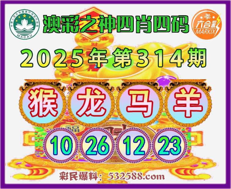 314期:〖澳彩之神〗 ✨四肖四码✨【猴龙马羊】【10.26.12.23】开:羊23准