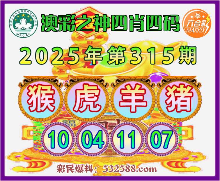 315期:〖澳彩之神〗 ✨四肖四码✨【猴虎羊猪】【10.04.11.07】开:虎04准