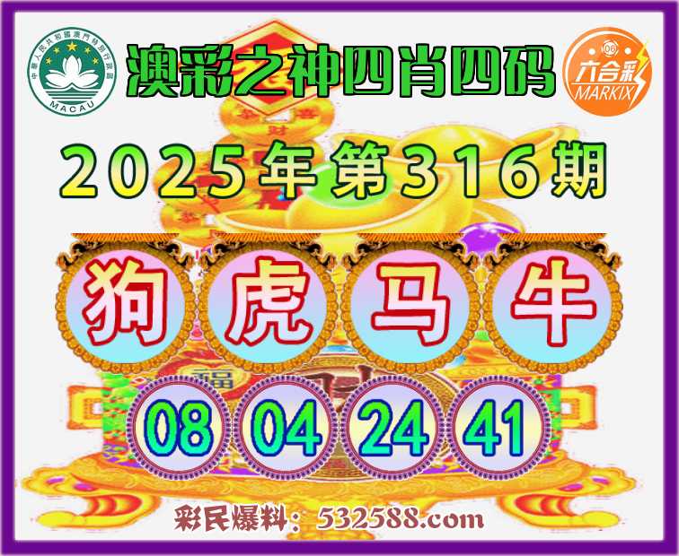316期:〖澳彩之神〗 ✨四肖四码✨【狗虎马牛】【08.04.24.41】开:马24准