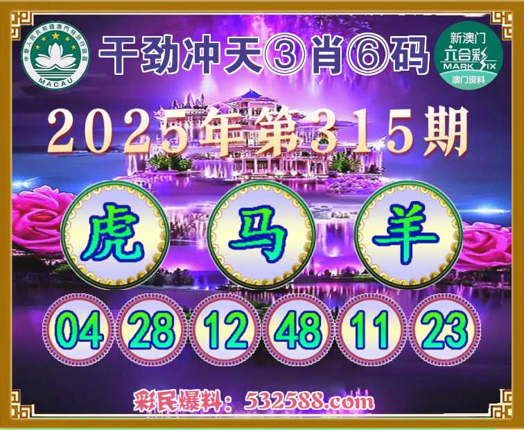 315期: 🍗《干劲冲天》 🍗③肖⑥码🍗【虎马羊】开:虎04准